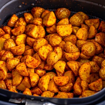 One of my favorite breakfast items, Air Fryer Home Fries. Baby gold potatoes tossed in a savory seasoning mix and air-fried to crispy golden brown in 15 minutes, so easy!
