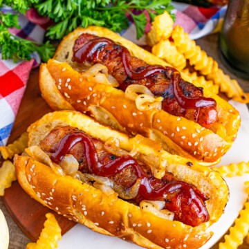 - We love to serve ours on pretzel hot dog buns but use whatever bun you prefer.