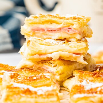 The powdered sugar adds a subtle sweetness that contrasts nicely with the savory ham and cheese, but it’s totally optional.