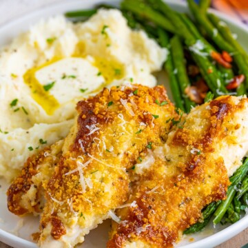 These Oven Baked Chicken Tenders are a total hit in our household. They’re all about super tender chicken that’s light, crunchy, and super flavorful, coated in creamy parmesan.