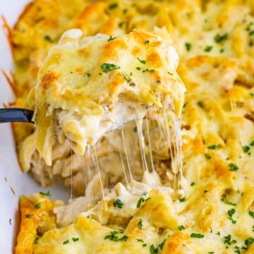 Our Chicken Alfredo Bake is an absolute must-make and total crowd-pleasing recipe. Easy, creamy, filling, hearty, and absolutely delicious.
