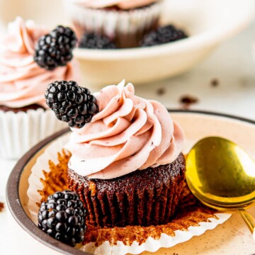 If you’ve tried these CHOCOLATE CUPCAKES WITH BLACKBERRY BUTTERCREAM, let me know how it turned out in the comments! You can follow me over on PINTEREST, INSTAGRAM OR FACEBOOK to find some more of our mouthwatering recipes!