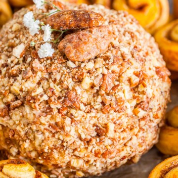- Festive and Flavorful: The blend of sweet cream cheese, cinnamon, and praline pecans makes this a unique and delicious appetizer. I don’t think there is a better way to enjoy a cheese ball.