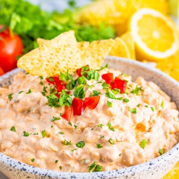 - Versatile: This dip can be served with your favorite tortilla chips, pita chips, or fresh veggies. You can also customize it with different toppings to suit your taste.