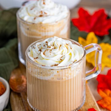 - Top with whipped cream and more pumpkin pie spice if using.