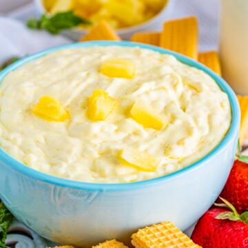 This pineapple dip recipe only has 5 ingredients; you can’t beat that! I have been getting asked for the recipe every time I make it, and no one can believe it is so easy to make.