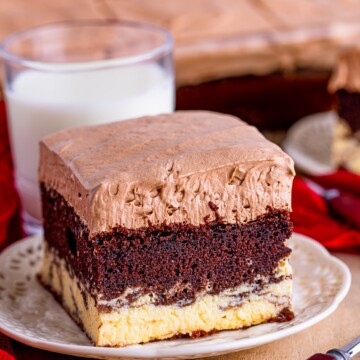 Make sure you use a chocolate cake recipe for a 9×13 baking dish.