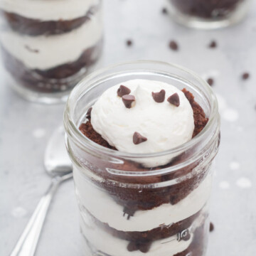 Top off each layer with some mini chocolate chips, then just keep layering again until you get to the top!