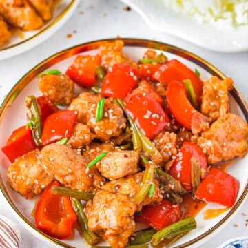 If you know me by now, you know I love recreating restaurant staples. Today’s recipe is just that with our Ginger Chicken!