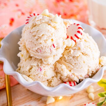 This Easy Edible Cookie Dough Recipe is like enjoying the holidays in every bite – a perfect blend of sweet cookie dough, white chocolate, and refreshing peppermint!