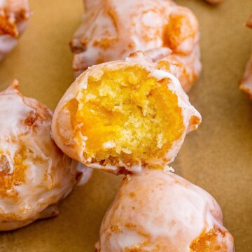 - Immediately place them into the glaze, and allow the excess to drip off. Place them on the wire rack while you continue with the remaining batter and glaze.