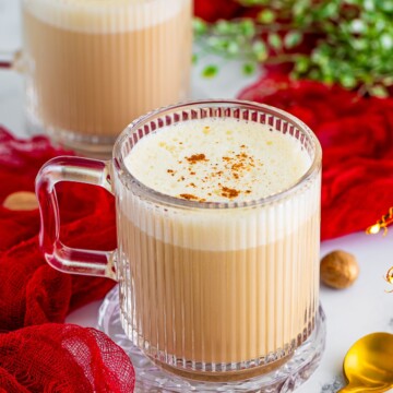 Which brand of eggnog you use will determine the sweetness of the latte since we are not adding any additional syrup. You can always go homemade, too! I suggest tasting the eggnog and possibly adding more sweetness with simple syrup, honey, or real maple syrup, if needed.