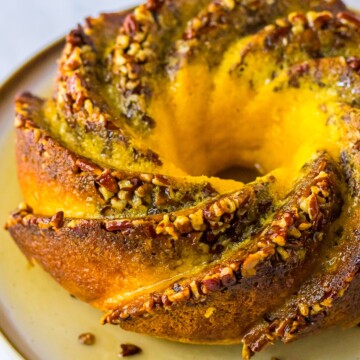 Freezer: To freeze, wrap the cake (without glaze) in aluminum foil and then plastic wrap to prevent freezer burn.