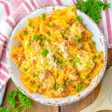 While bowtie pasta works wonders, feel free to use regular lasagna noodles broken into small pieces for that traditional feel without the layering fuss.