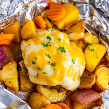 You can also make foil packets with other cuts of protein such as pork chops, chicken breast, or even sausage foil packets. But, we are focusing on juicy burgers for this version!