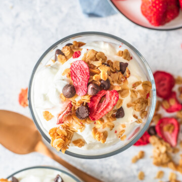I love having a bowl of FAGE with a portion of my dark chocolate strawberry granola. But, Greek yogurt has become a go-to snack and dessert around our house as well.
