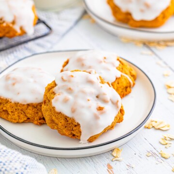 These Pumpkin Oatmeal Cookies are the perfect fall cookie, combining the warm flavors of pumpkin pie spice with the chewy texture of oatmeal cookies; all dipped in a vanilla glaze.