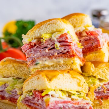 These Italian Sliders are like a mini-trip to Italy for your taste buds, with tangy cheese, flavorful deli meats, and a creamy, herby dressing that ties everything together.