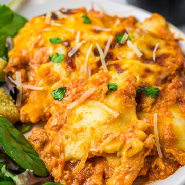 Think of this Lazy Lasagna recipe as a shortcut to yumminess. It’s a snazzy way of saying ravioli casserole, and oh boy, is it good!