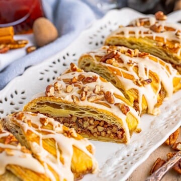 One of my favorite recipes to make this time of year is this Maple Pecan Pastry Braid. It’s an easy recipe that combines the flaky goodness of puff pastry with the rich flavors of maple syrup, brown sugar, and crunchy pecans!