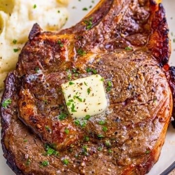 I use my best steak marinade to elevate a simple steak to the next level. And you know me, I did a bone-in ribeye this time because why not?