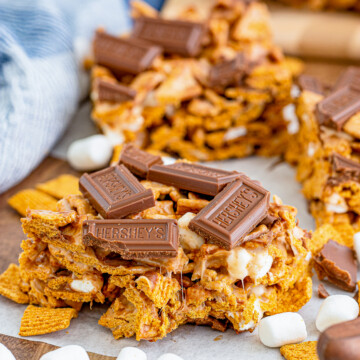 These Cereal Treats combine all the best parts of s’mores—graham flavor, milk chocolate bars, and sticky marshmallows. YUM!!