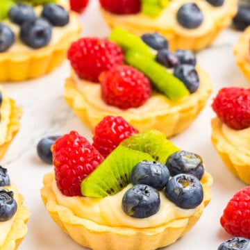 The tart crusts are buttery and flaky, the custard filling is velvety and rich, and the fruit makes every bite pop like a flavor firework.