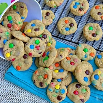 They are perfect for little mouths and much easier on portion control! Peanut butter cookie base loaded with mini m&m’s and oats! They are so yummy, they will be your newest go-to!