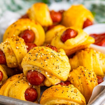 Mini Pigs in a Blanket are more than just a classic appetizer. They are memories, laughs, and good times rolled into a fluffy crescent roll, hugging a delicious lil’ smokey.