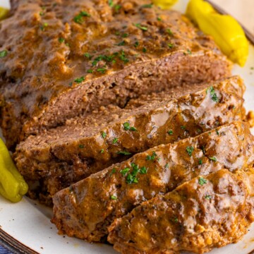 - Slice and serve the meatloaf, and add the gravy over each portion.