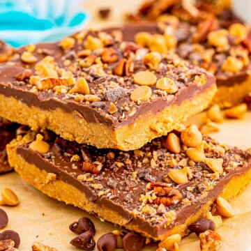 The texture has to be mentioned, too. Between the peanut butter, chocolate, toffee, and pecans, this recipe is pure heaven!