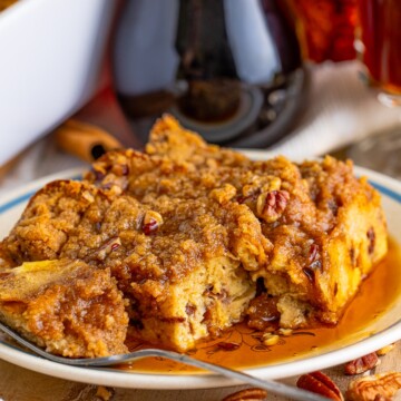 You can also freeze this delicious breakfast, the best method is to wrap the whole casserole dish in plastic wrap two times, then once in foil. The french toast bake will keep in the freezer for up to 2 months.
