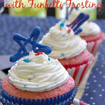 Patriotic Strawberry Cupcakes with Funfetti Frosting