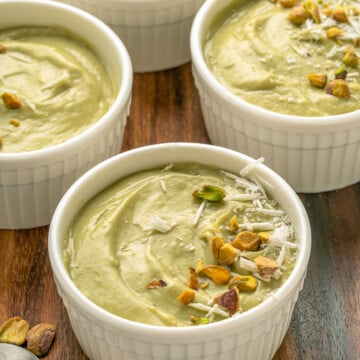 - Garnish with chopped pistachios and serve chilled.1/4 cup crushed pistachios