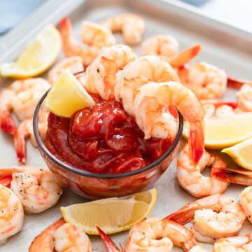 Shrimp cocktail is one of my all-time appetizers and it doesn’t get any easier than roasting!