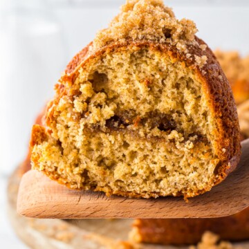 - Moist and Fluffy: Using Greek yogurt and melted butter ensures a moist cake every time. Then on top of the cake you’ve got the crumb layer. It’s great from start to finish!