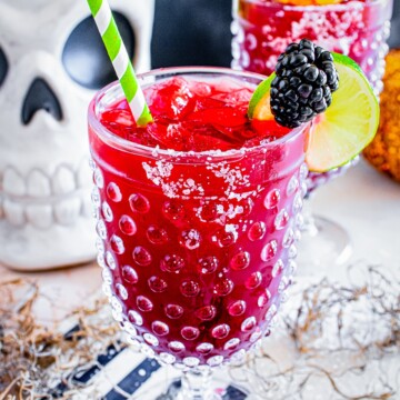 As delicious as it is spooky, this Halloween Margarita is loaded with blackberry flavors and finished with a salt or sugar rim. Plus, tips for making this into a spooky, kid-friendly mocktail!