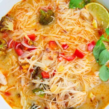The creamy coconut milk adds a lovely smoothness, while the veggies and chicken make it a filling and nutritious meal.