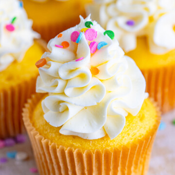 I love this American Buttercream Recipe so much I could eat it straight, but it’s even better piled high on vanilla cupcakes, sandwiched between layer cake tiers, or smoothed into a thin crumb coat on a big birthday cake.