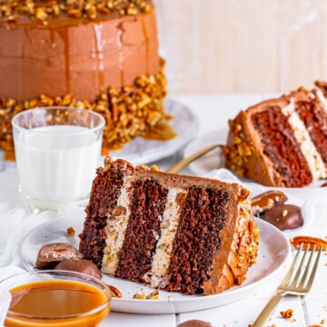 When you think of epic desserts, doesn’t a huge layer cake come to mind? I know it does for me, and with this Turtle Cake, you can’t get any more epic than this!