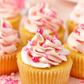 This from-scratch recipe features light, fluffy, and moist vanilla cupcakes topped with vanilla buttercream frosting, which makes them the perfect cupcake recipe to have on hand for any occasion.