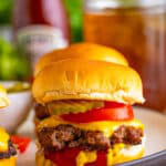 Take burgers out of skillet and place on slider buns and add toppings of your choice. Serve immediately.