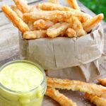 Shortcut Sweet Potato Tempura with Curry Aioli Recipe found on https://thissillygirlskitchen.com/coconut-tempura-sweet-potato-fries-with-curry-aioli/ *All nutritional information is approximate and may not be 100% accurate. Please consult a nutritionist for more specific information.