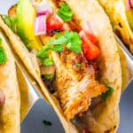 We’re talking about the BEST Chicken Tacos: juicy chicken, perfectly grilled and seasoned, stuffed into warm tortillas, and topped with your favorite toppings.